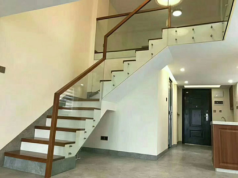 對于上面沒有其他材料的組合玻璃樓梯扶手,一些視力差、恐高的朋友可能不適合。你可以考慮使用木材或金屬材料,如原木顏色、黑色等,這樣扶手可以看得更清楚,避免走在上面時頭暈。