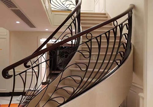 別墅室內異形鐵藝樓梯扶手定制設計本身外觀精致美觀,適合別墅頂層儲藏室和相對狹窄的空間。通過臺階連接到只有一側的扶手部分,盤旋而上。