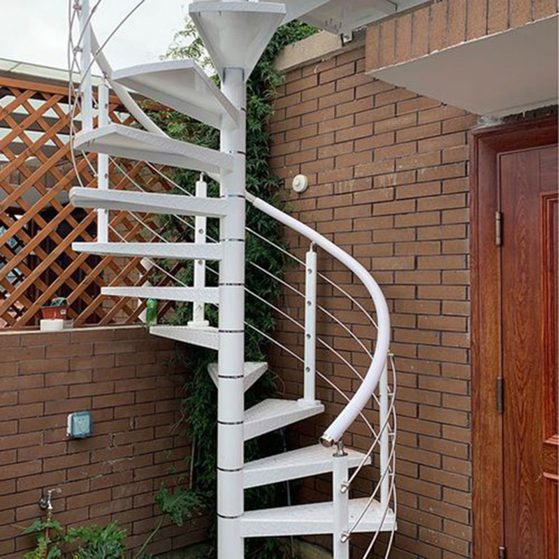 室外旋轉(zhuǎn)白色單人疊式樓梯定制效果圖