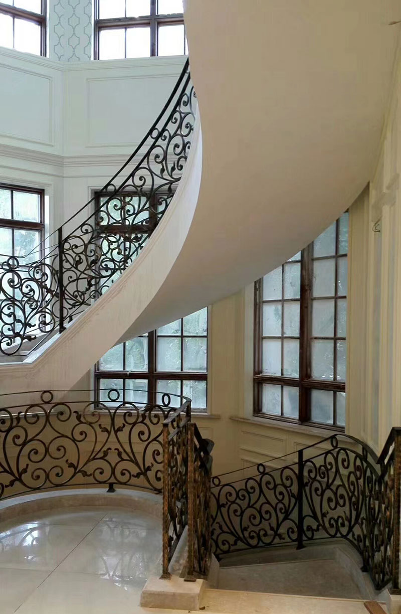 豐臺別墅裝修黑色鐵藝旋轉樓梯定制設計案例