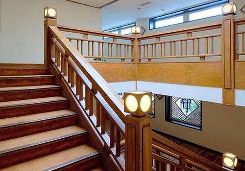 明亮的黃光輕輕照亮了樓梯的每個角落。神秘古典,古老精致的中國壁燈,中國壁畫的藝術內涵。當你慢慢爬上梯子時,你可以看到優雅清新的中國裝飾,創造一個詩意的禪宗領域。酒店會所中式風格實木樓梯裝飾將采用原木材料,質地柔軟,色彩清新宜人,線條光滑彎曲,散發出柔和的氣質。